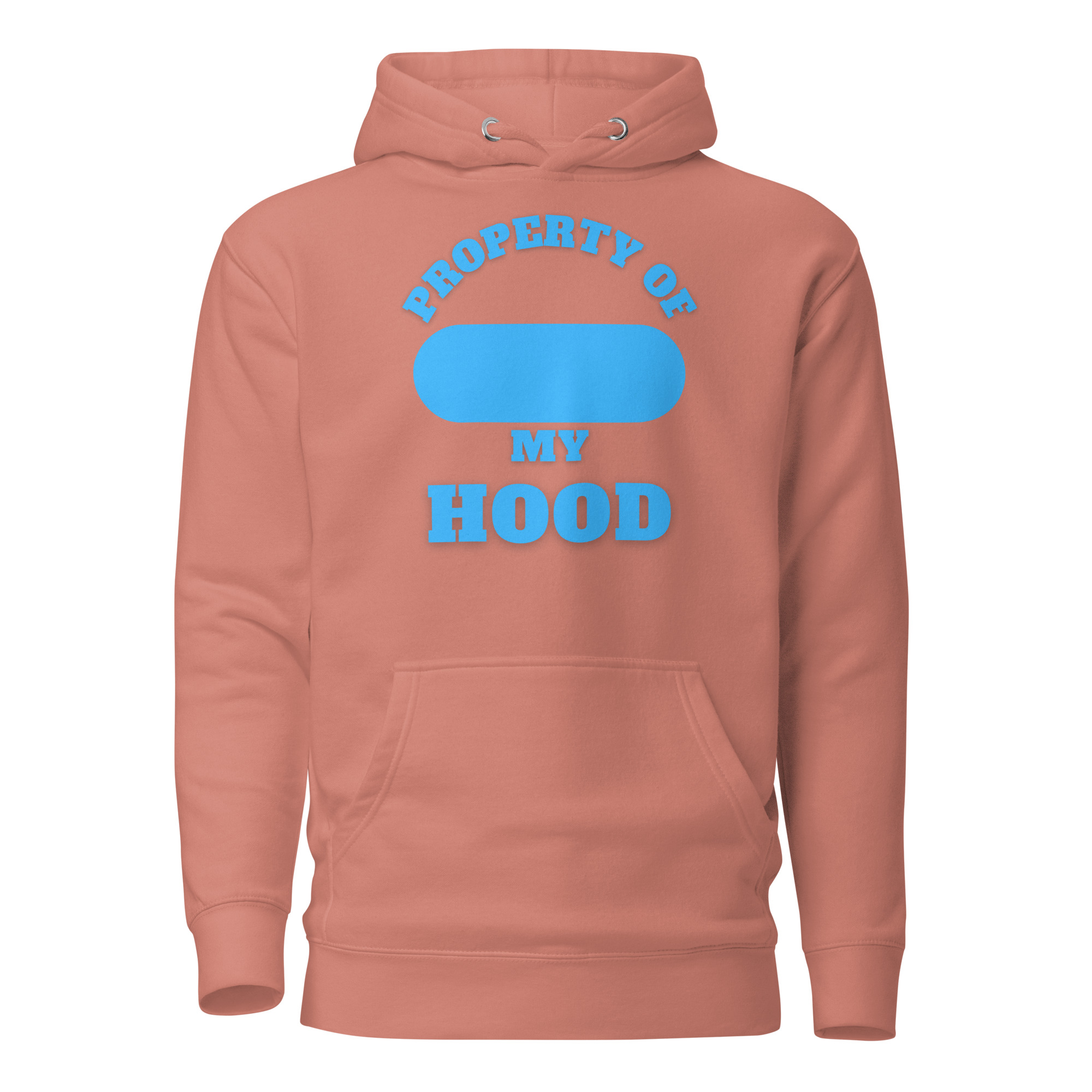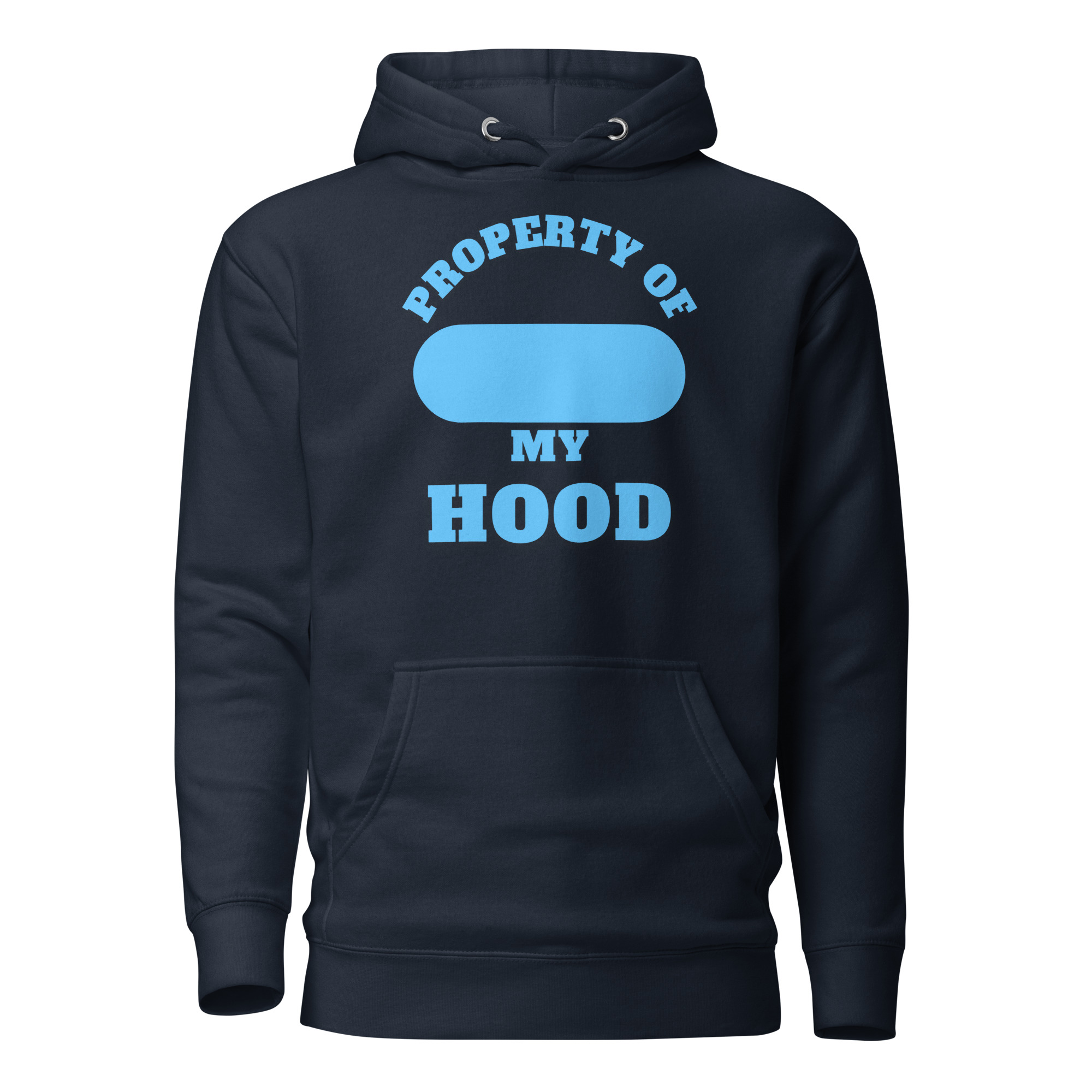 Unisex Hoodie Property-of-my-Hood-XXL-Alfa-Add-your-own-zip-code-in-Light-Blue-Letters