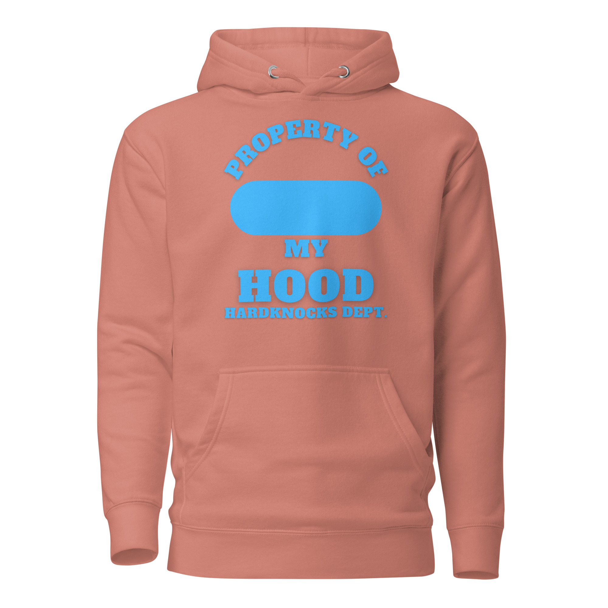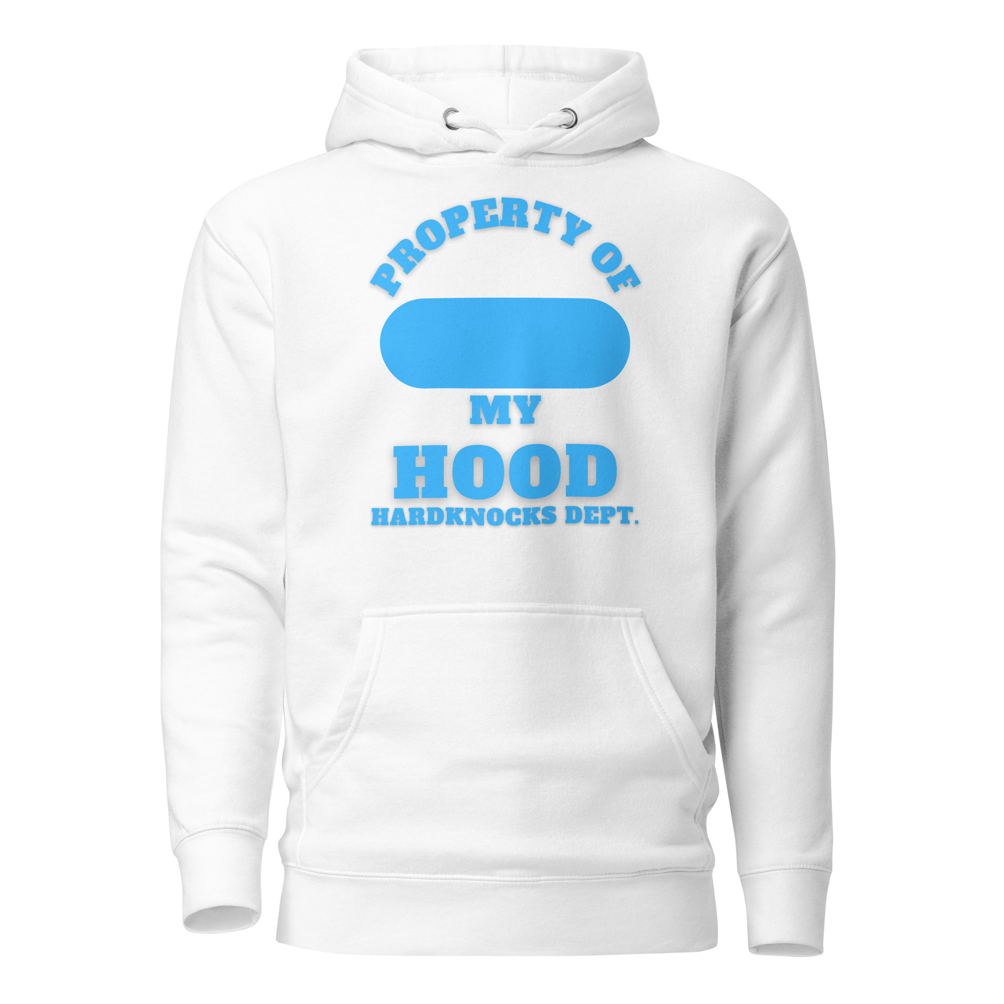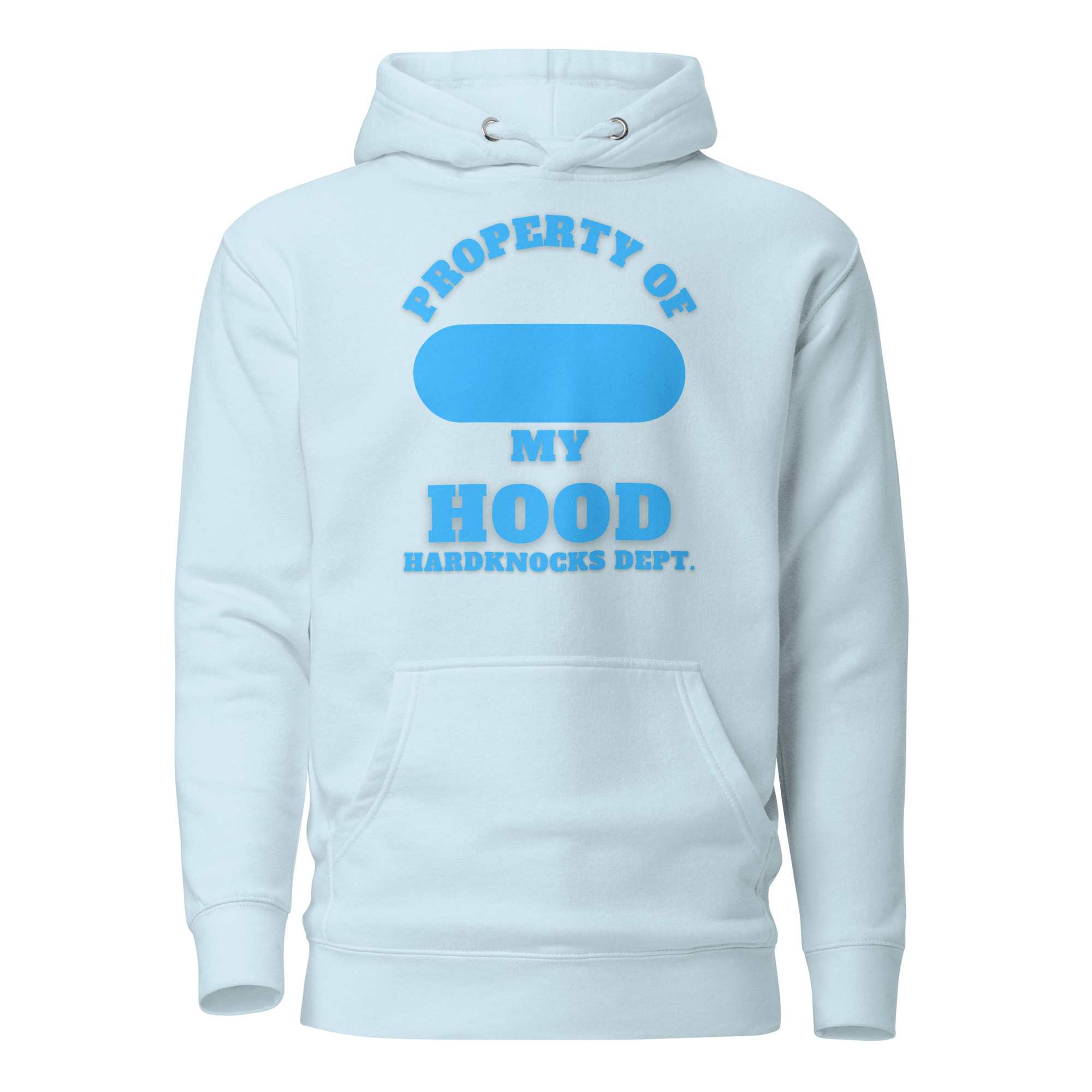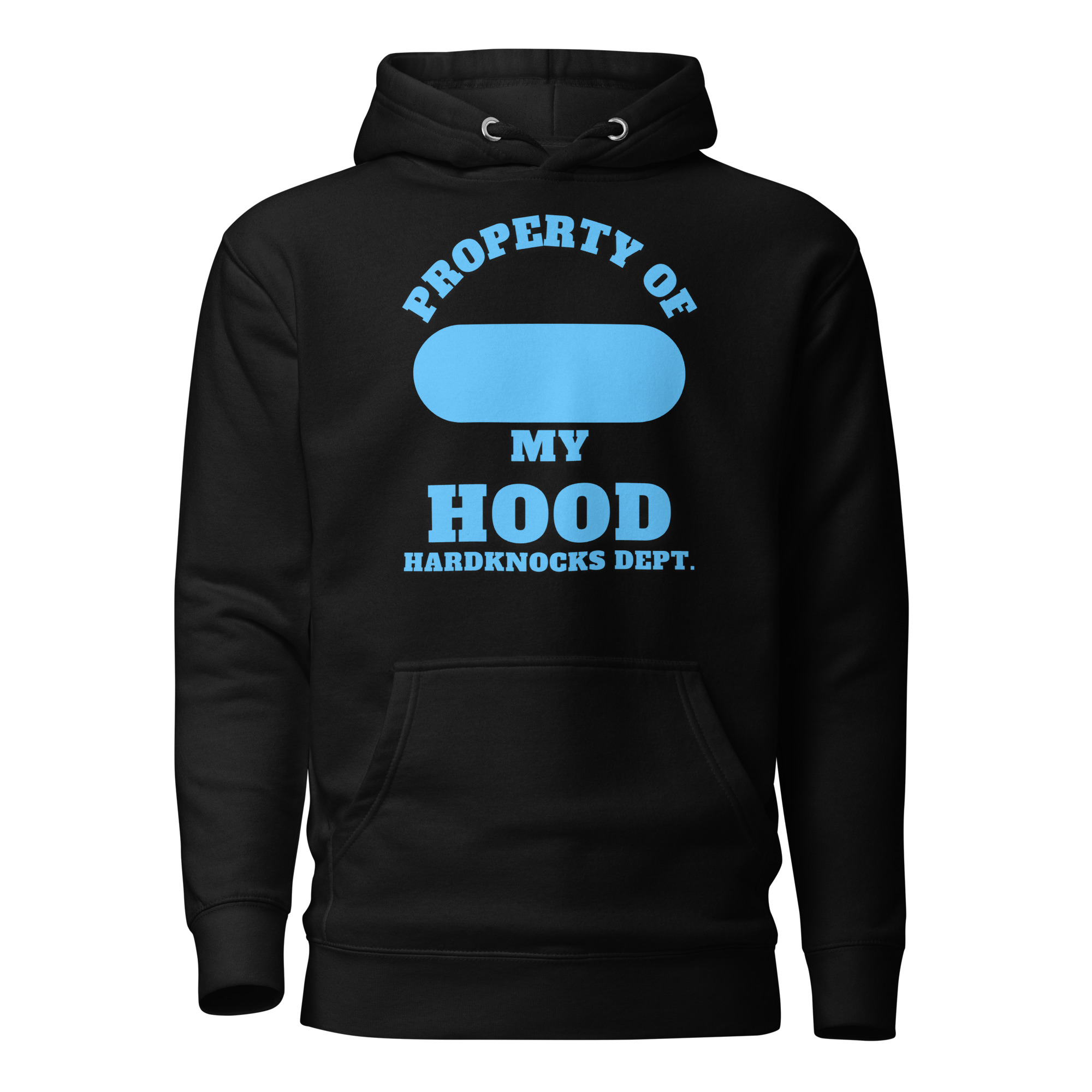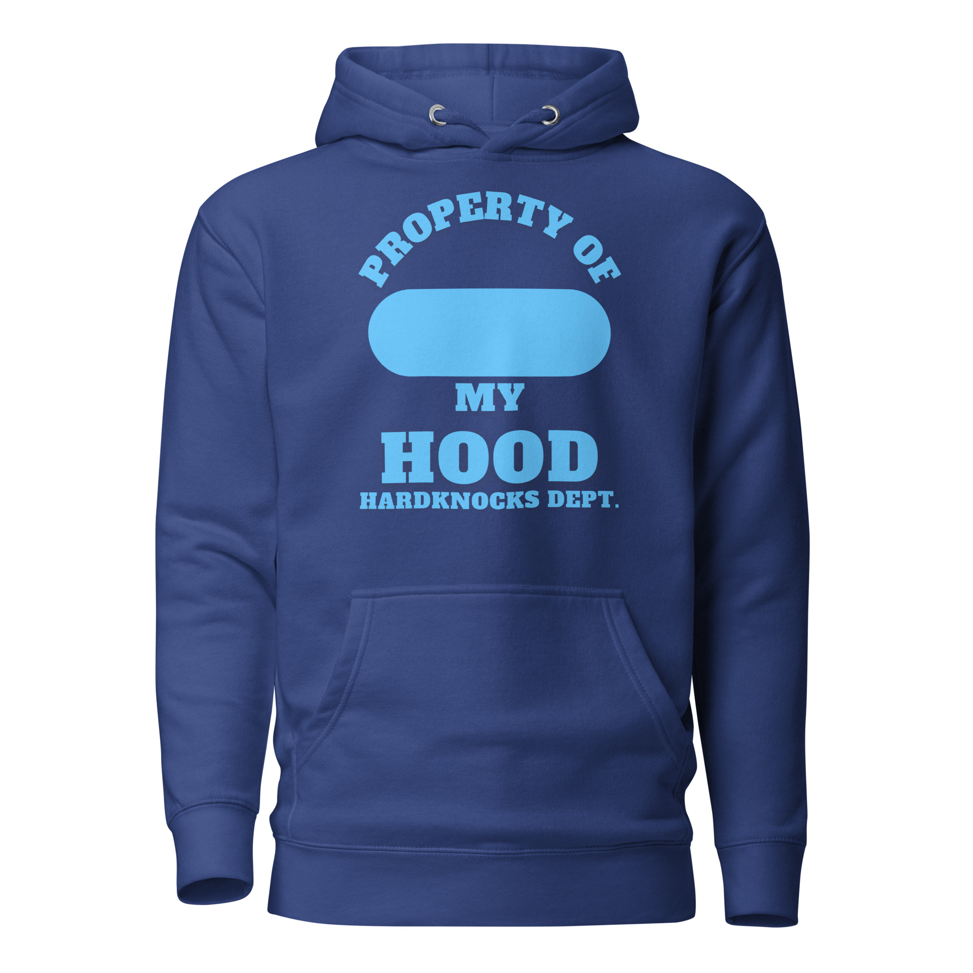 Unisex Hoodie Property-of-my-Hood-XXL-Alfa-Add-your-own-zip-Hardknocks-Dept-in-Blue-Letters