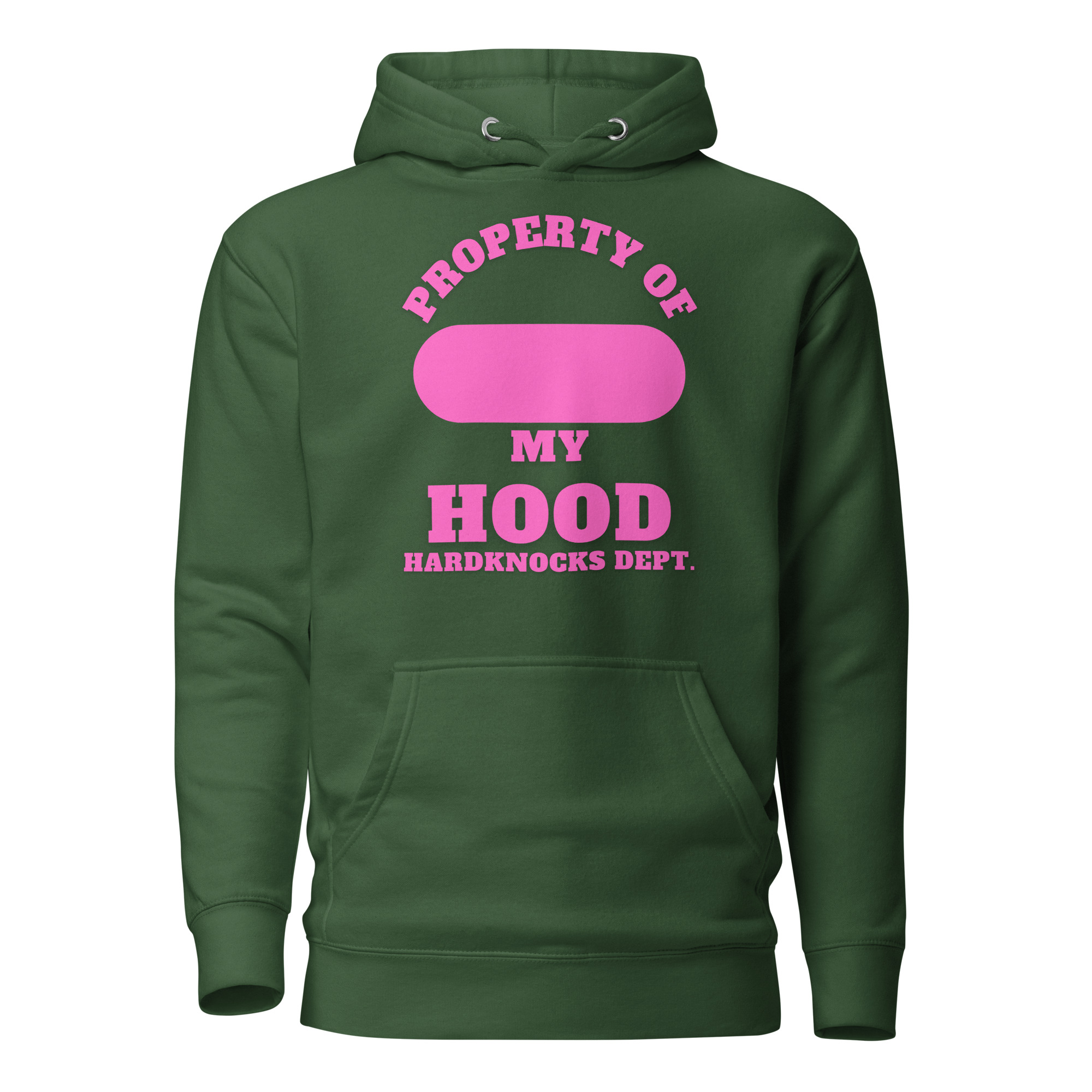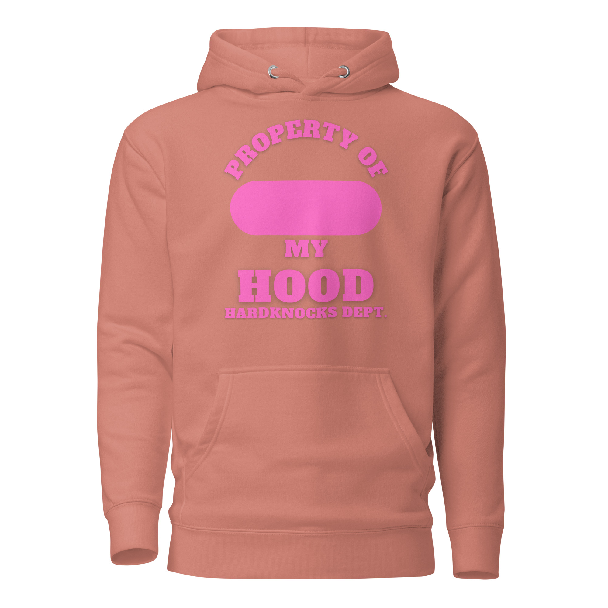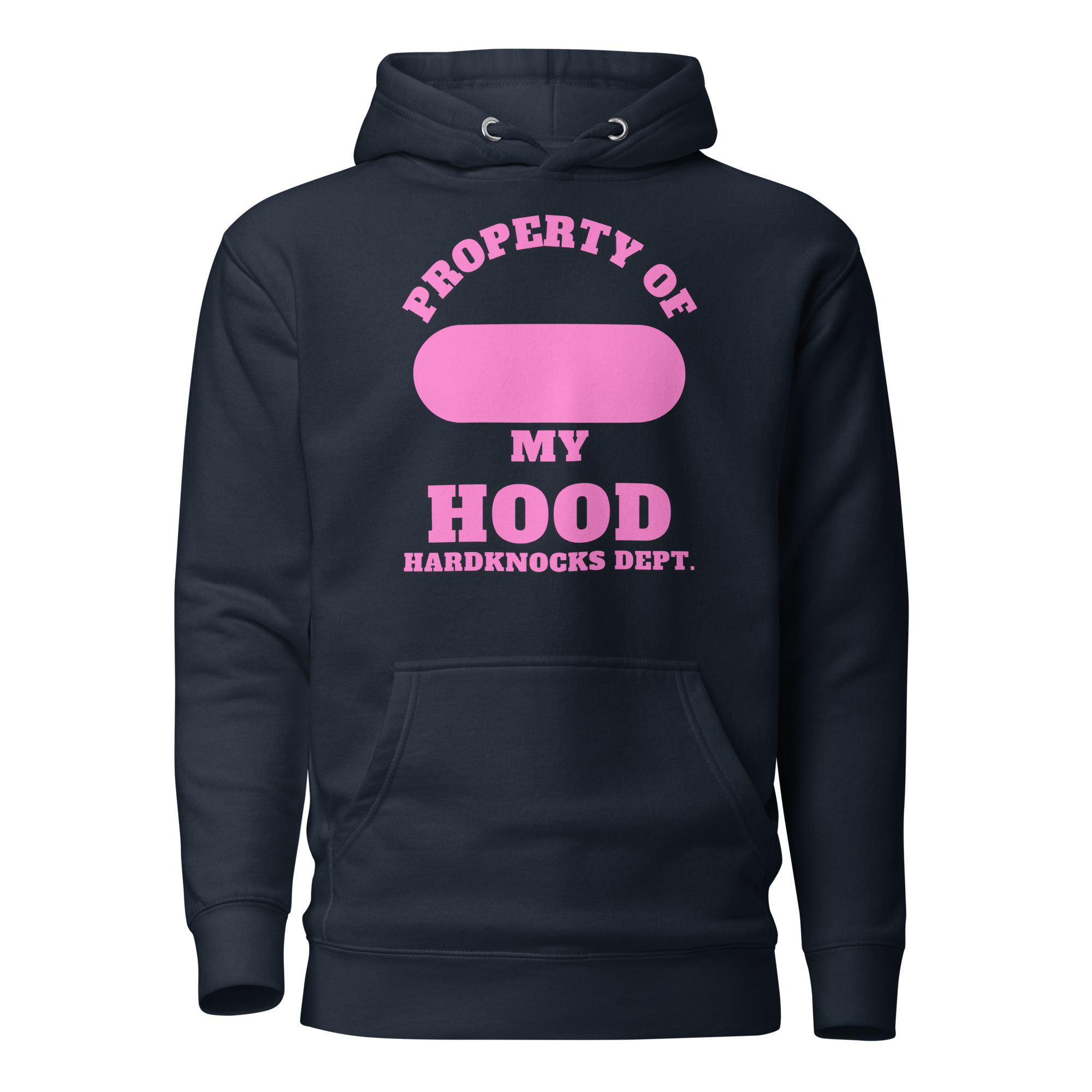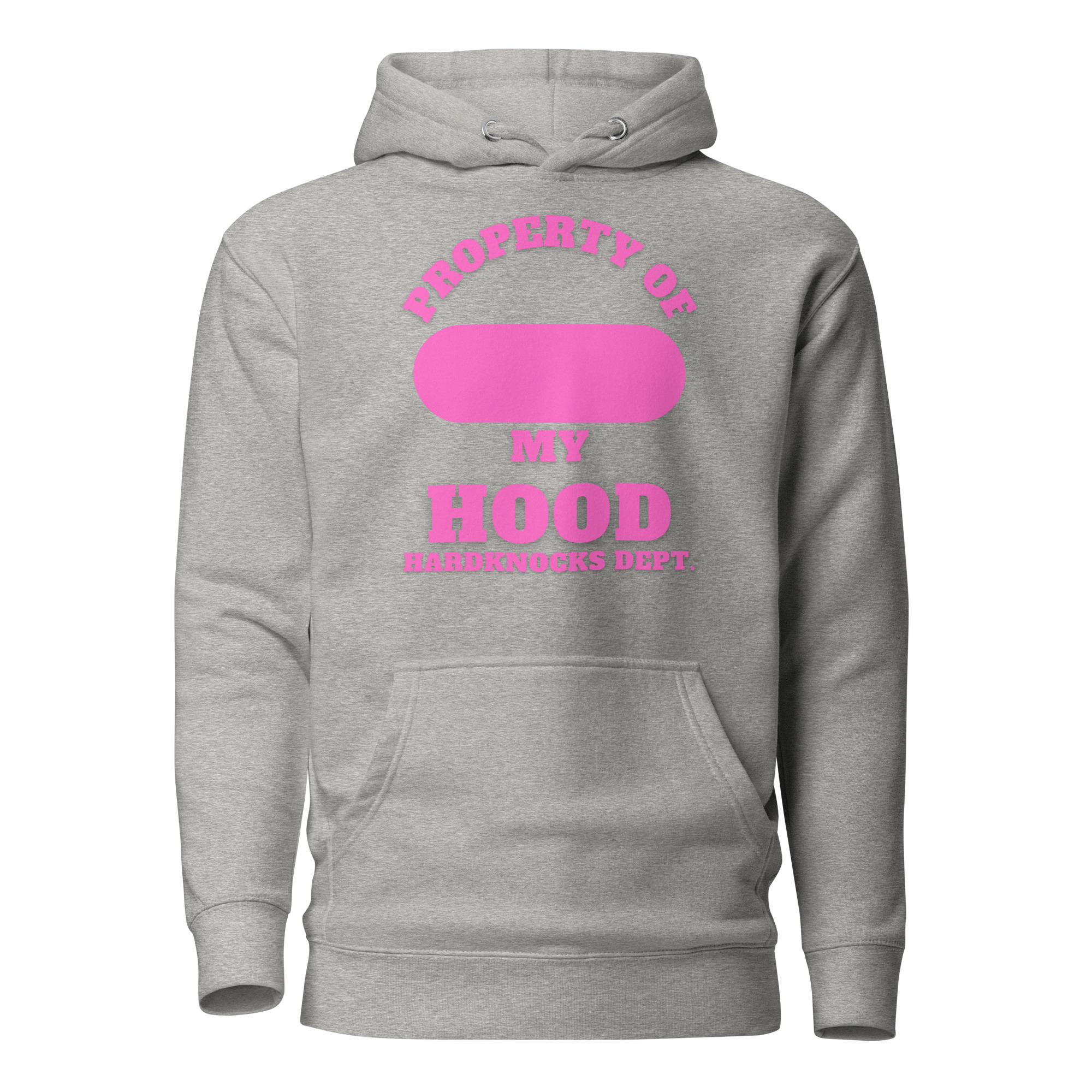 Unisex Hoodie Property-of-my-Hood-XXL-Alfa-Add-your-own-zip-Hardknocks-Dept-in-Pink-Letters